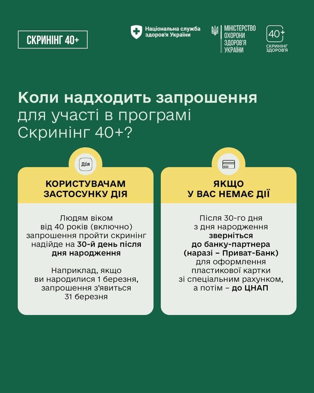 - Національна програма Скринінг здоровʼя 40+